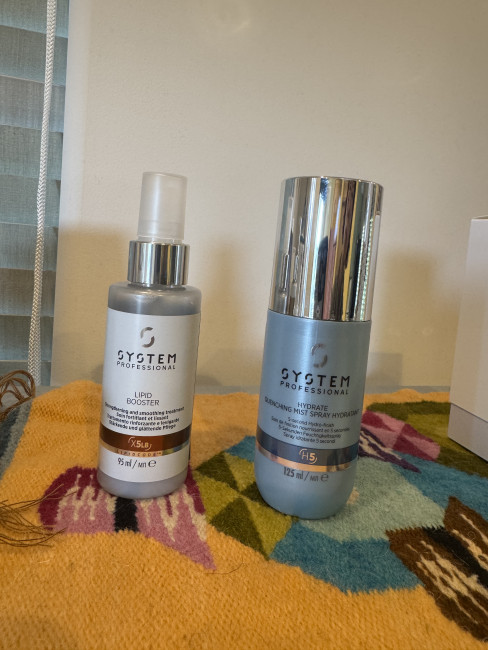 ミストタイプのアウトバストリートメントをオイル前につけるのも良いです。ダメージによるパサつきならリピッドブースター、水分が足りないならハイドレイトミストをつけてオイルを出します。
